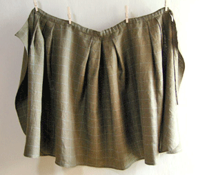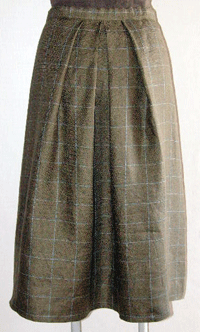 :秋色のリネンのSkirtは、前に本後ろに4本のタックを入れたラップスカートです。
