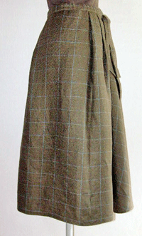 :ラップスカートは、上前がはだける事が気になりますが、この型は、下前も中心よりにタックがあり布の分量感が有るので、気になりません。