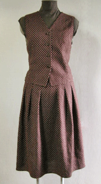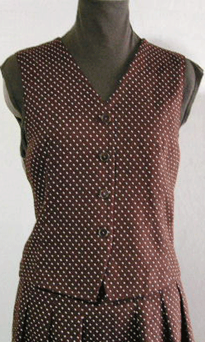 :クラシックな雰囲気の茶色にオフホワイトのピンドット柄のベストは、ウエスト下約10cm丈の着易いベストです。