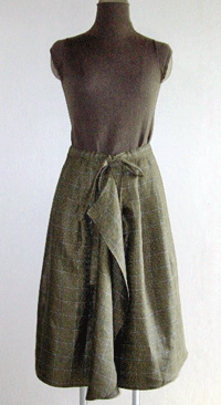 :秋色のリネンのSkirtは、前に本後ろに4本のタックを入れたラップスカートです。