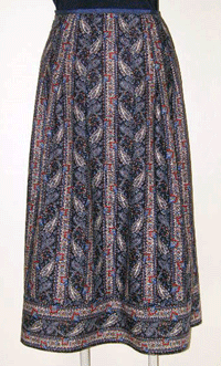 :ウールモスリンのペーズリープリントです。イタリア製のクラシックな柄ですので、上品でとても素敵な布です。左の画像は、ほぼ実物大の大きさです。実物の方が深みの有る色合いです。全体のイメージは上のスカートの色合いをご参考になってくださいませ。モスリンは強撚の平織りのウール地で私の大好きな布の一つです。クラシックな雰囲気が魅力です。学生の頃、アンティークな花柄のワンピースを作って着ていた事を思い出します。ウールモスリンは、なんともノスタルジックな布です。